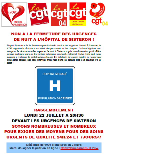 Sisteron : Rassemblement le 22 Juillet à 20h30 by cncdhmp19 juillet 201916 h 28 minCommentaires fermés sur Sisteron : Rassemblement le 22 Juillet à 20h30Actions et interventions, Hôpital, Non classé, Régions maternité Le Tract