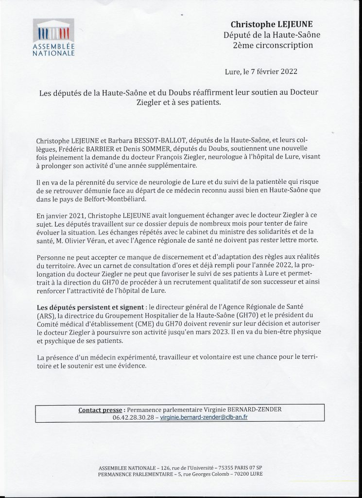 Conférence de presse le 7 février organisée par le CV70 dans le Grand Salon de la Mairie de Lure, pour l’hôpital de jour en Neurologie du site luron