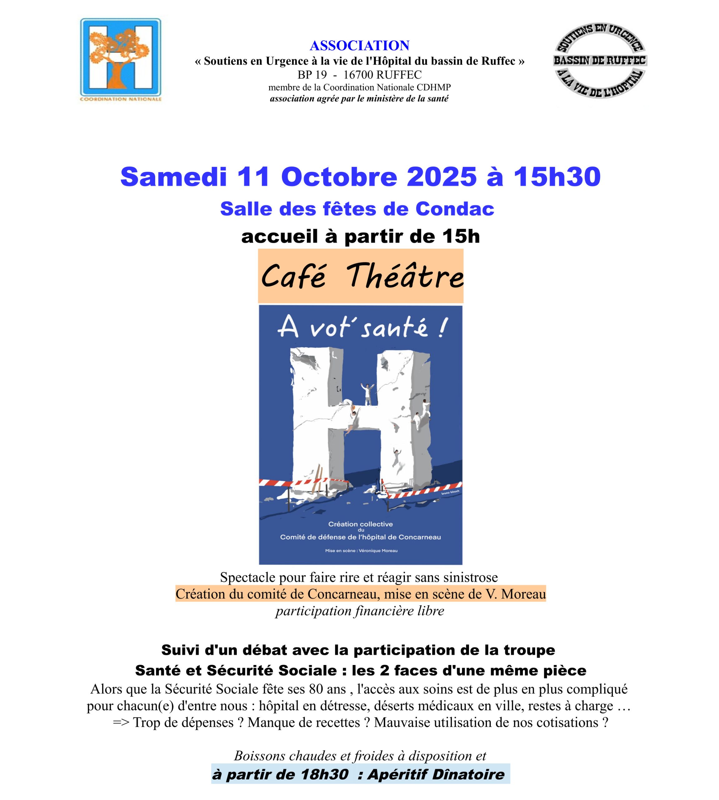 Le 25 octobre à 20h à la salle de St Sever la Sécurité Sociale mise en scène par le collectif de Concarneau