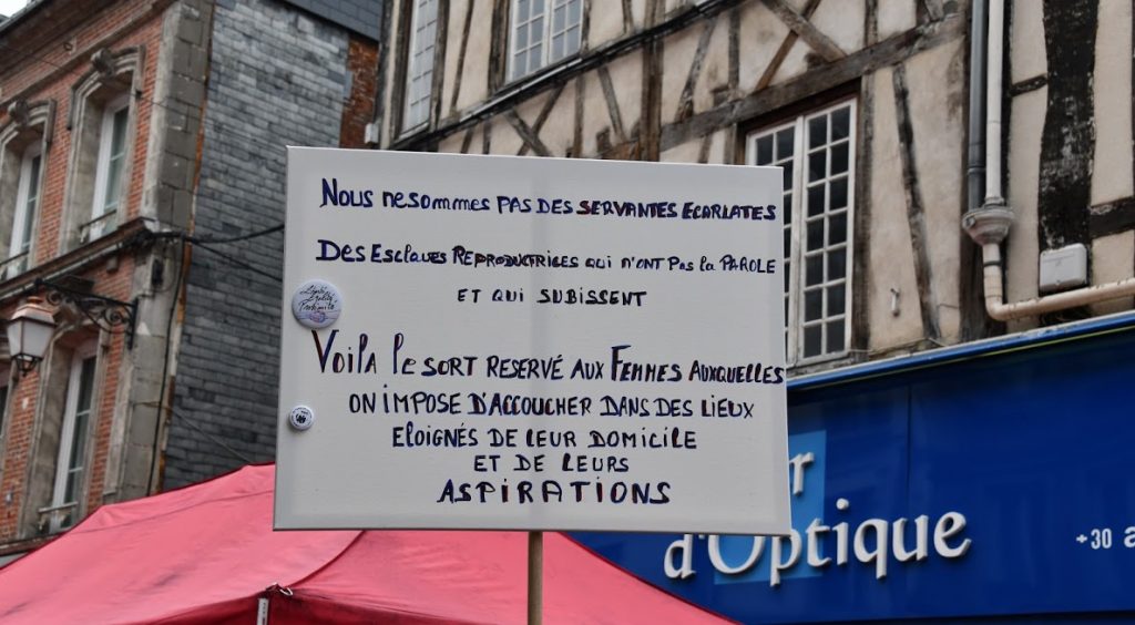 Action-défilé des servantes écarlates ce samedi 18 mai matin à l’occasion du marché hebdomadaire de BERNAY, pour continuer à dénoncer le sacrifice des services hospitaliers, en l’occurrence la fermeture de la maternité, mais aussi des services publics en général, et au cours duquel il a été déclamé publiquement certains courriers de l’association qui ont été adressés notamment à Madame la Ministre de la santé, suite à sa visite à BERNAY et à la fermeture de la maternité.