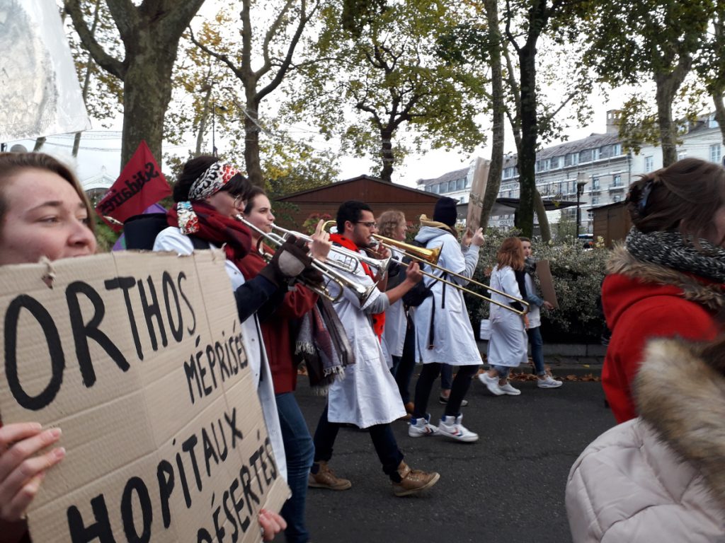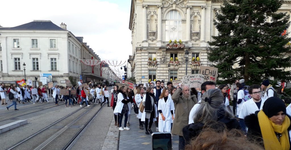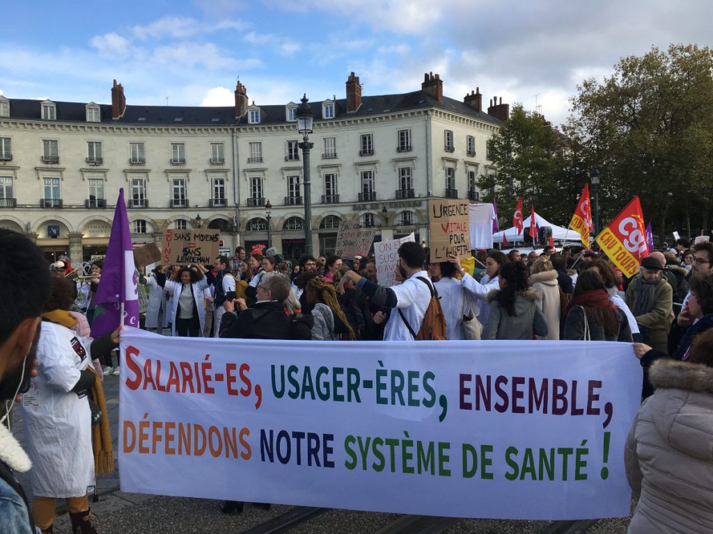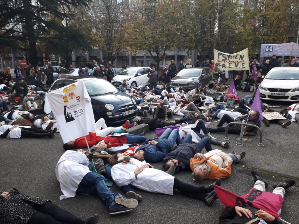 « Une militante du collectif santé a donné son expérience de l’hôpital en saluant le dévouement du personnel malgré les conditions de travail dont elle a constaté qu’elles se dégradaient au fil des années ; elle a dénoncé aussi les conséquences de l ‘ambulatoire qui augmente l’angoisse des patients et reporte sur les familles la surveillance des malades. Un dying spectaculaire a matérialisé les conséquences de la dégradation des conditions de travail et de soins « qui nous tuent ».
