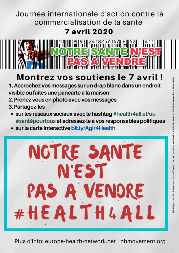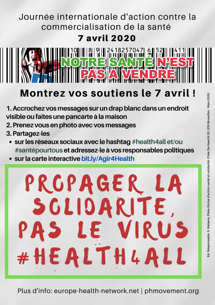 Aujourd’hui, plus que jamais, il est urgent d’agir. L’épidémie de COVID-19 nous montre l’importance d’une action coordonnée. Ce dont nous avons besoin maintenant, c’est d’un système de santé solide et solidaire pour tou.te.s et d’une coordination qui dépasse les frontières nationales, avec une action efficace à l’échelle européenne et mondiale.