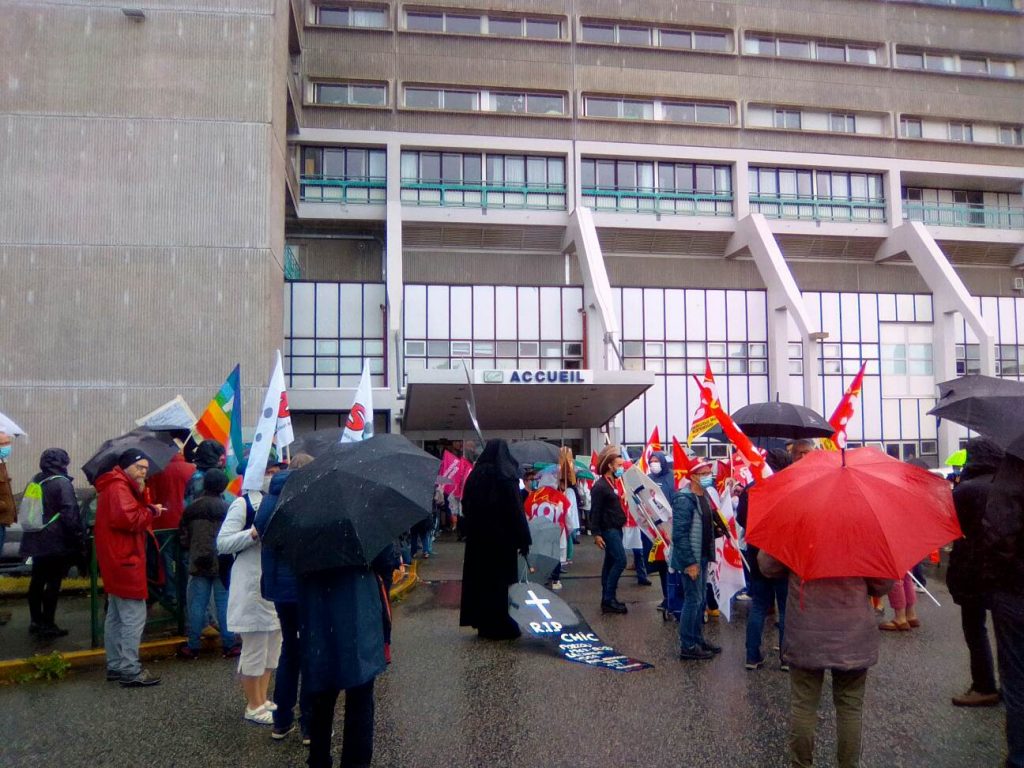 500 personnes réunies malgré le temps sur l’Esplanade Saint Vincent à l’appel de l’intersyndicale des personnels hospitaliers de l’hôpital de Saint Malo. La coordination « Le Monde d’après » avait appelé à se joindre au rassemblement : Attac, Femmes solidaires Saint Malo, Génération.s, Gilets jaunes Saint Malo, LDH, LFI, NPA, Osons, Parti socialiste, PCF, Place publique, Solidaires 35 pays malouin, UDB.