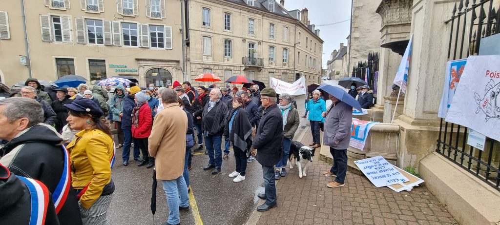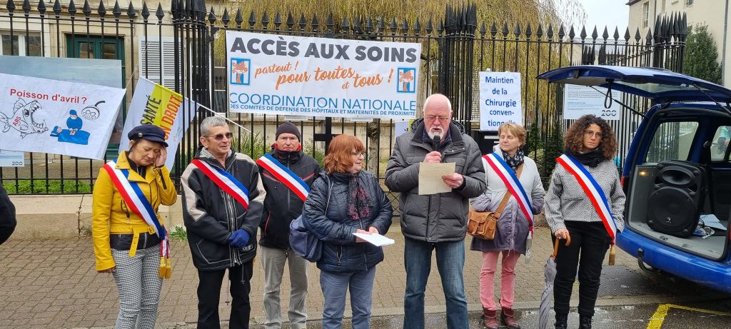150 personnes rassemblées devant la Sous Préfecture pour dénoncer la fermeture de la chirurgie conventionnelle ce 1er avril à Dole pour exiger un moratoire sur toutes les fermetures de service, le retour de la chirurgie et des lits et postes supprimés ces dernières années.Avec le comité de défense de l’Hôpital, la CgT du Chs Pasteur, des élu.es, des citoyens indignés par les premiers témoignages des dysfonctionnements constaté s avec notamment des jeunes (8 ans et 16 ans qui attendent une dizaine d’heures un diagnostic pour savoir s’ils seront opérés). L’agence régionale de santé, le gouvernement refusent d’entendre ceux qui se sont exprimés unanimement pour le MAINTIEN de la chirurgie conventionnelle à l’Hôpital Pasteur de DOLE . Auprès de M.Borgeot, sous préfet qui nous a reçus nous avons posé les questions de :