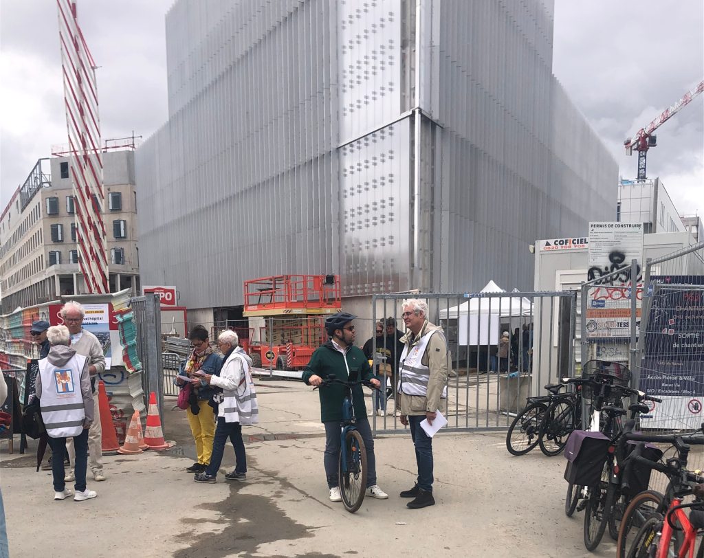 Le collectif nantais pour le droit à la santé et à la protection sociale pour toutes et tous a profité de l’organisation de deux journée de portes ouvertes du chantier du nouvel établissement du CHU de Nantes sur l’ Île de Nantes pour faire connaître sa opinion sur ce nouvel outil et en débattre avec les plusieurs de milliers visiteurs.
