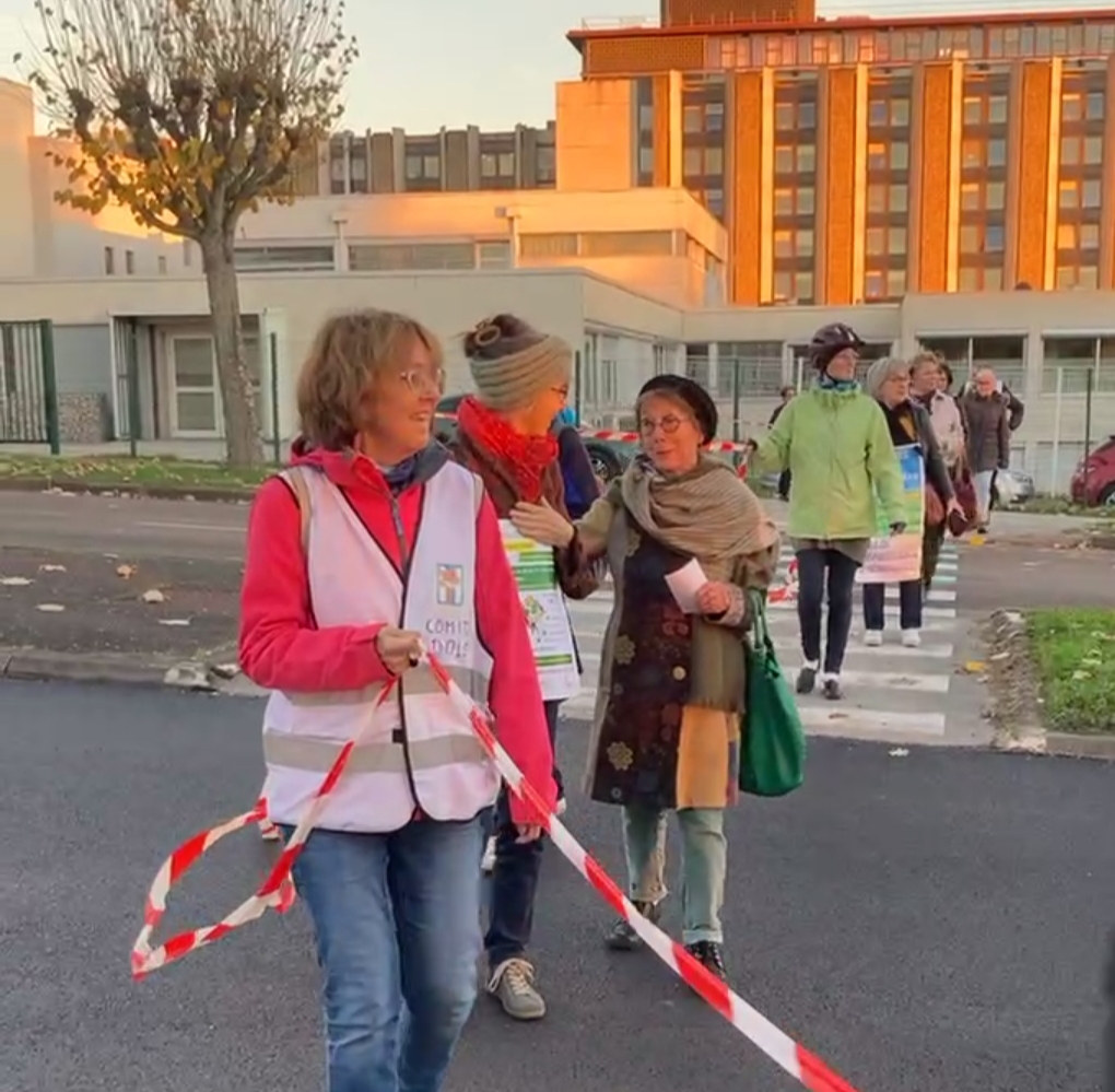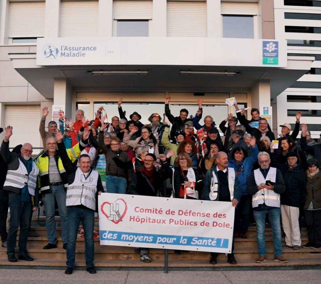Mardi 4 novembre, la chaîne humaine est partie de l’hôpital Pasteur à Dole pour rejoindre la Sécu (CPAM du Jura) au moment où s’engageait le débat à l’assemblée nationale sur le PLFSS 2026 qui prévoit des coupes dramatiques dans le domaine de la santé publique et des prestations sociales.