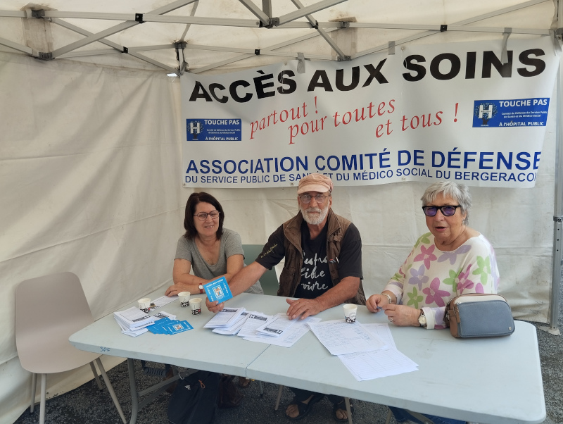 Samedi 8 juin, la veille du jour où le coucher de soleil s’est teinté de couleur brunâtre nous étions avec les militants du Secours Populaire de Bergerac à leur braderie pour faire signer la pétition contre le doublement des franchises médicales et tous les dépassements d’honoraires.